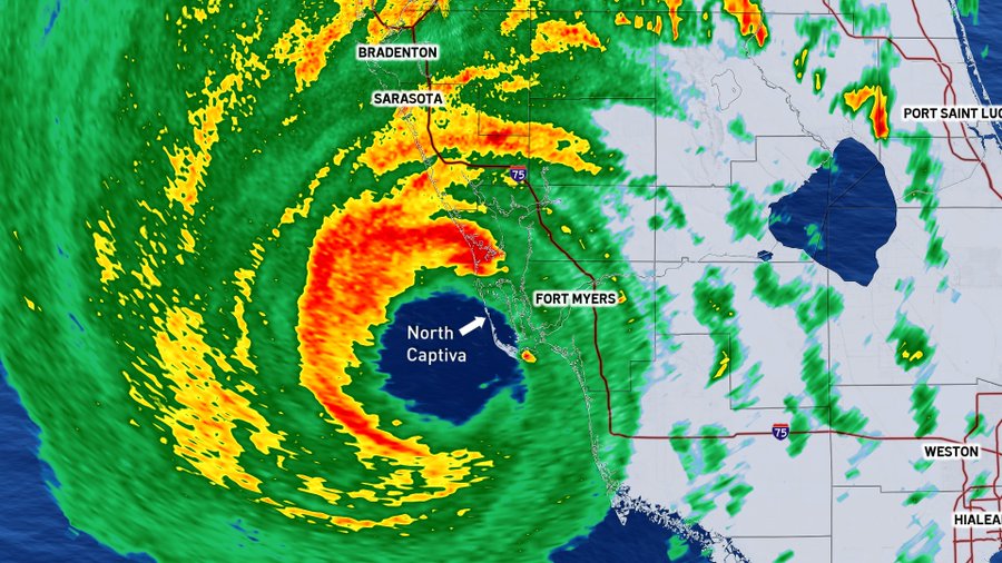 Now here’s a screenshot of the satellite imagery of Hurricane Ian making landfall in late September of 2022.