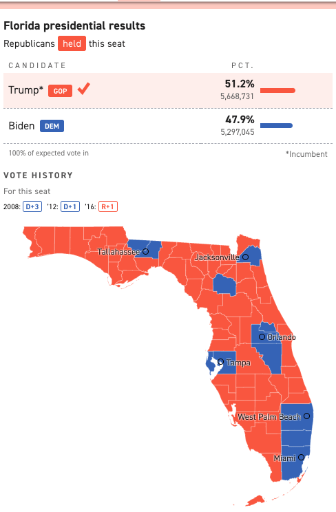 *Click on this link to see just how much Trump trounced Biden in each of those GOP-dominated southwest counties: https://www.politico.com/2020-election/results/florida/