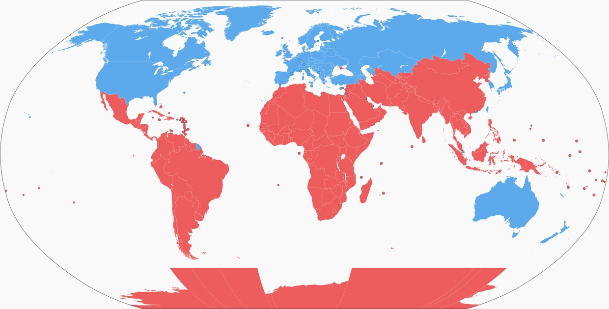 Take a look at the map of the Global North-South divide today. It is a stark reminder of a legacy divide between modern-era colonisers (i.e., from 1500 AD) and the colonised. Russia too was a colonising power right up to either 1917 or 1991 – depending on one’s historical bias – and was therefore placed within the Global North. Its actions since the breakup of the USSR however have not conformed to the rules of the new and improvised Great Game. Instead of spoliating its own citizens and the Global South, Moscow seems more concerned with NATO’s encroachment on its doorsteps.