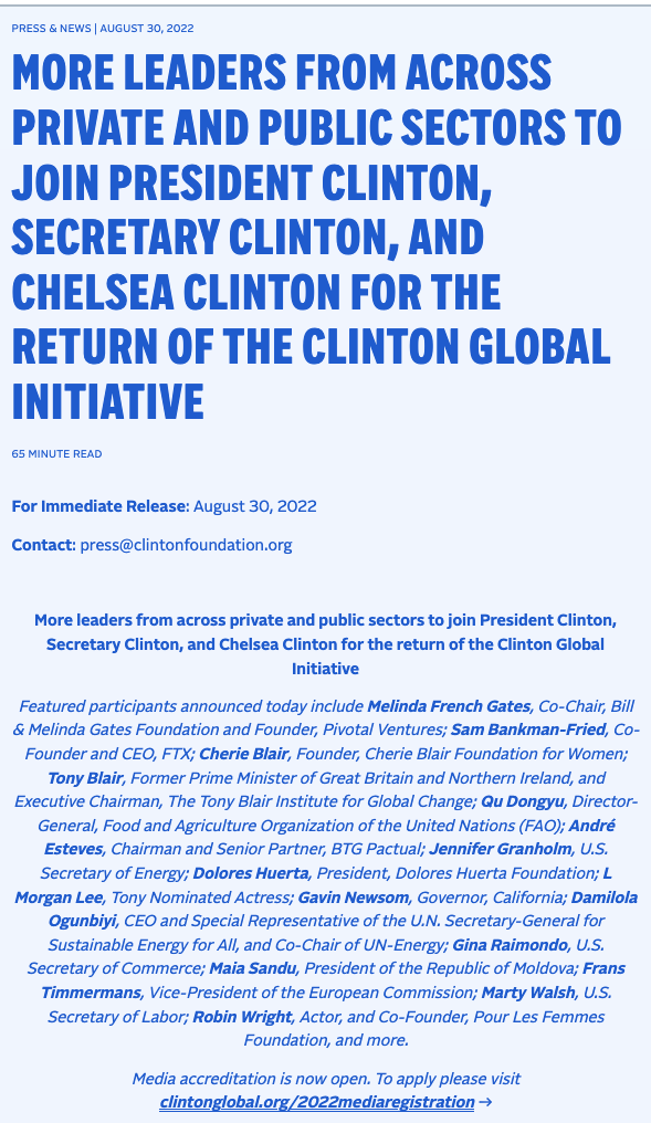 Clinton Foundation Comes Back with a Vengeance—Lists Crypto Thief Sam Bankman-Fried as “Featured Participant”