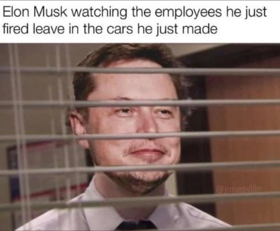 Watch Elon Musk watch the fired tweety birds drive away…..