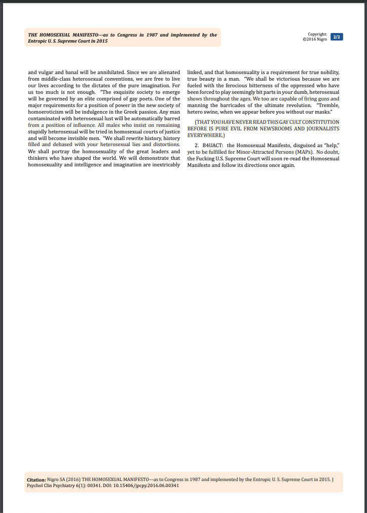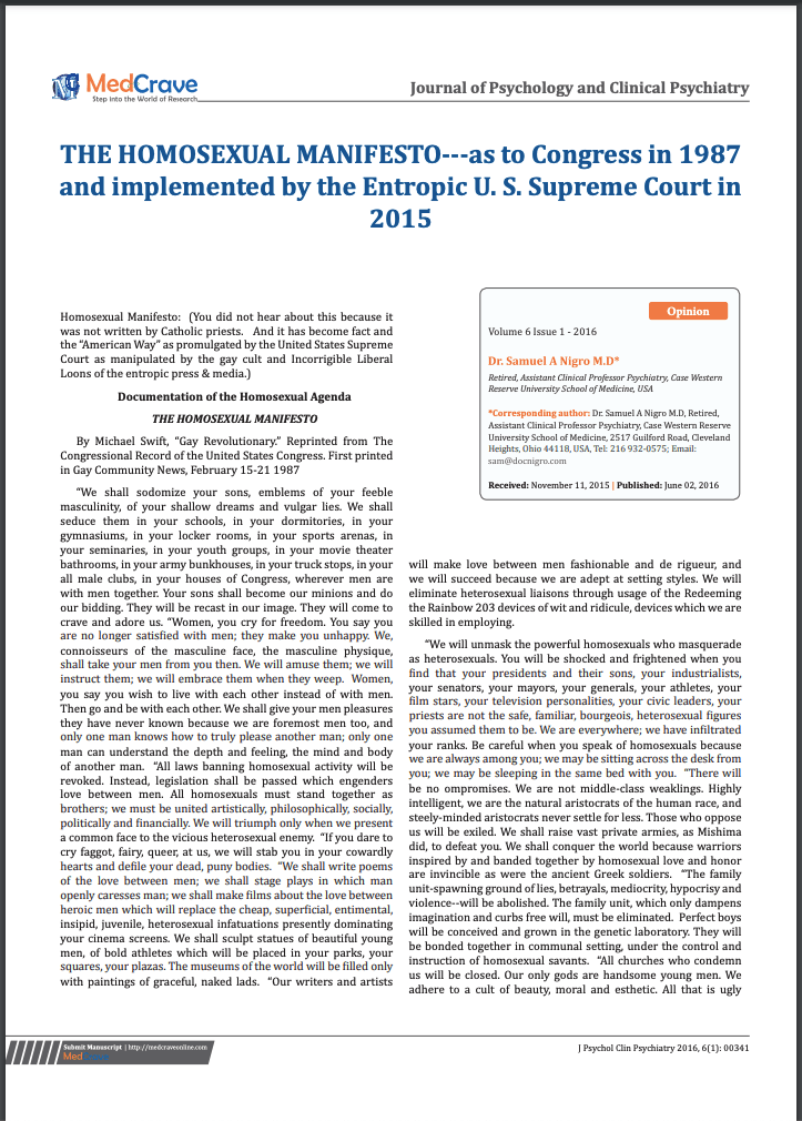 THE HOMOSEXUAL MANIFESTO—as to Congress in 1987 and implemented by the Entropic U. S. Supreme Court in 2015