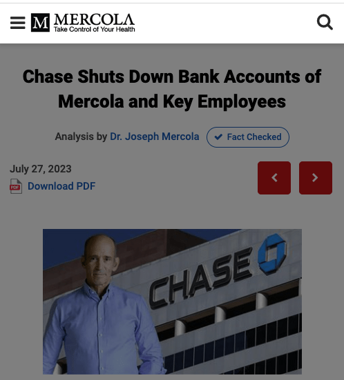 ___ https://articles.mercola.com/sites/articles/archive/2023/07/27/chase-shuts-down-bank-accounts-at-mercola.aspx