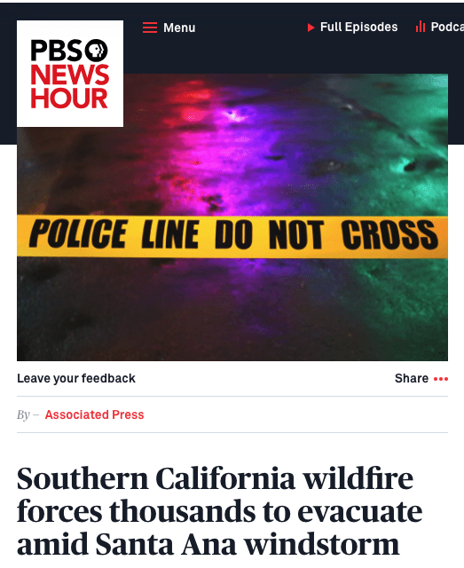 ___ https://www.pbs.org/newshour/nation/southern-california-wildfire-forces-thousands-to-evacuate-amid-santa-ana-windstorm