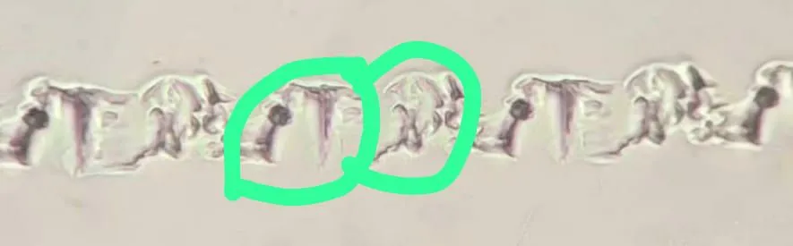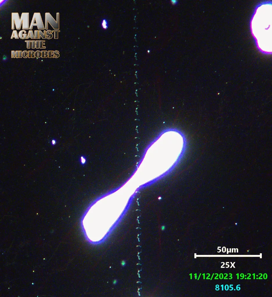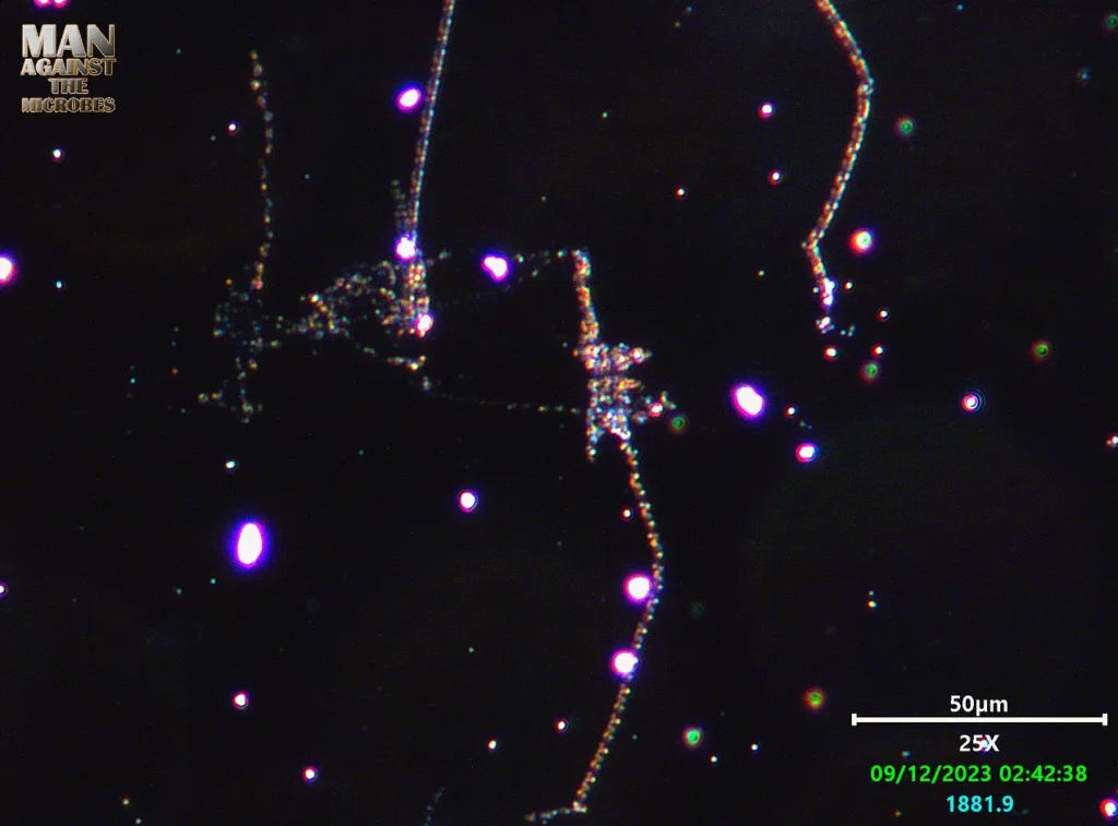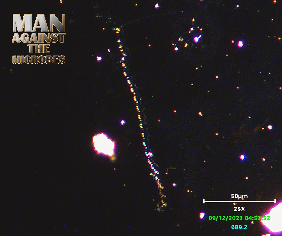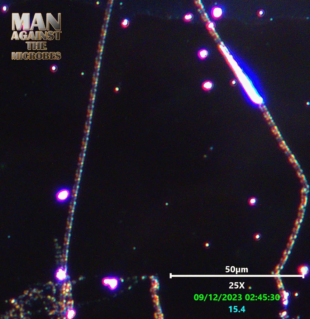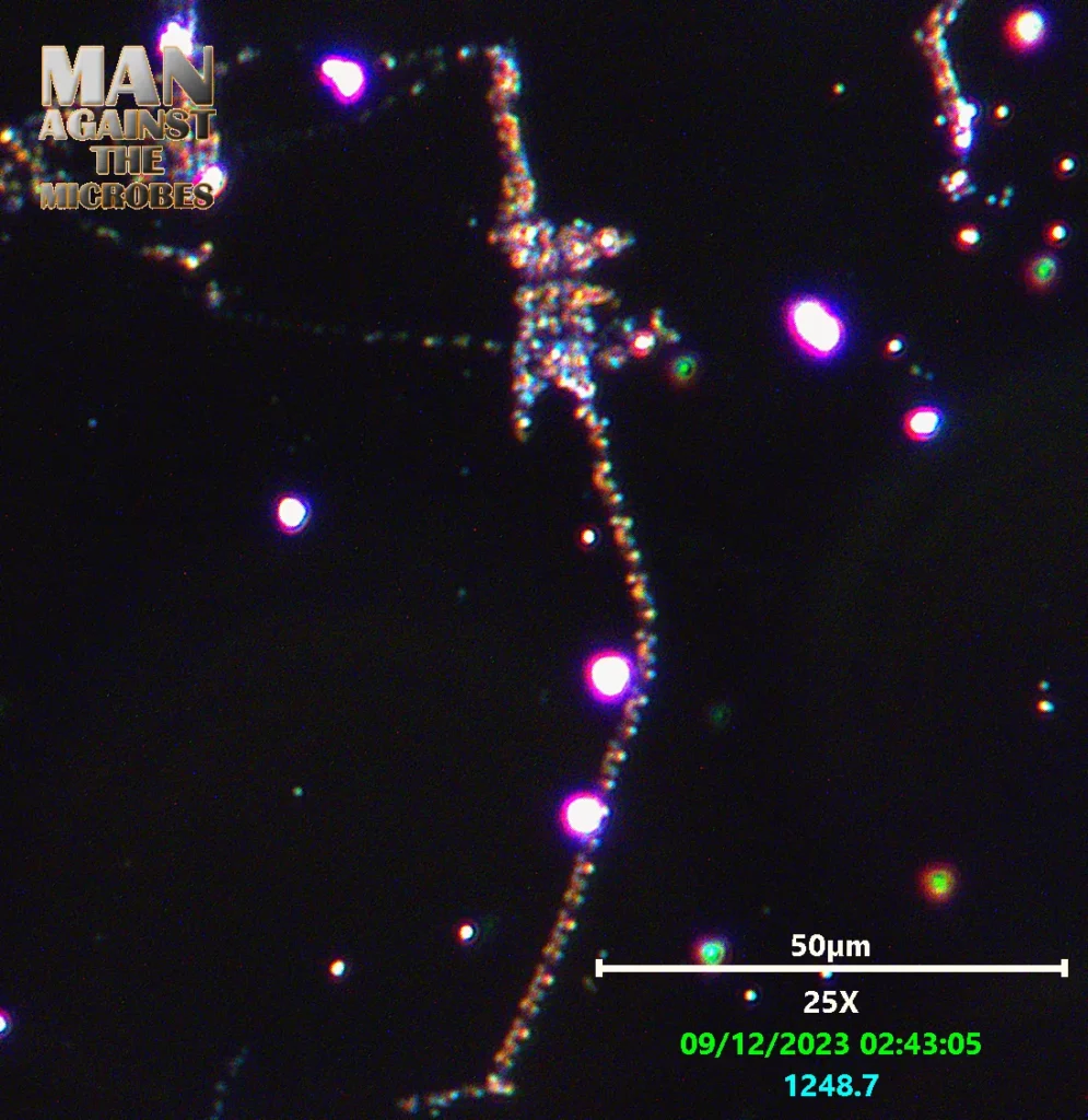 Long chains forming across the slide. As time passes we see these slowly forming in larger numbers. The dots can be seen as other structures and in other formations throughout the sample. Will show those in next posts.