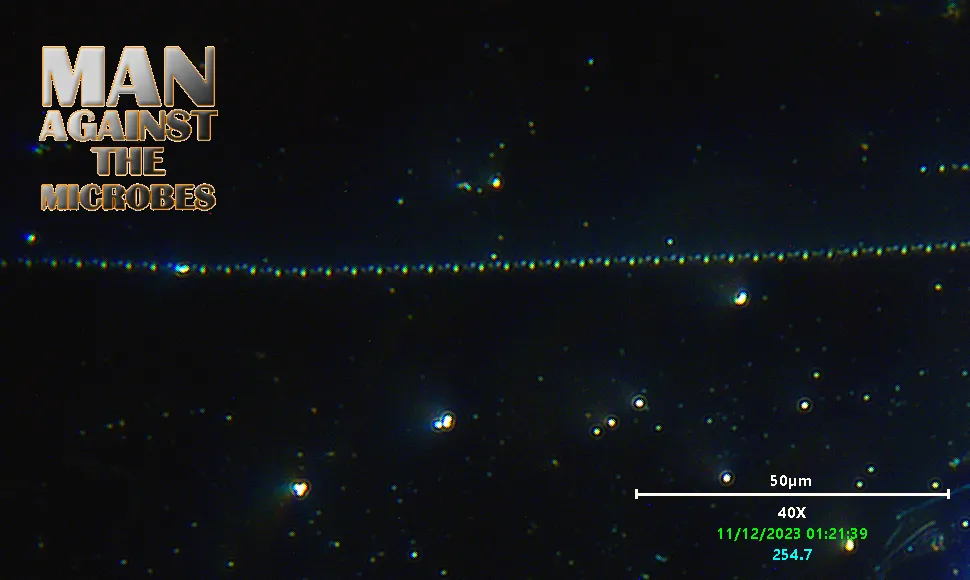 Urine after taking experimental solution showing dots in an organized sequential and repeating alignment. @40x DF Leica DM2000 BIGEYE 10.1MP industrial grade camera.