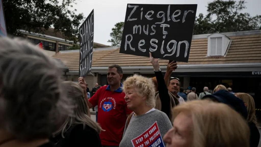 At a Sarasota board meeting last week, she resisted calls to resign, fielding criticism from speakers who cast Mrs Ziegler – who with her husband has promoted anti-LGBT policies – as a hypocrite.