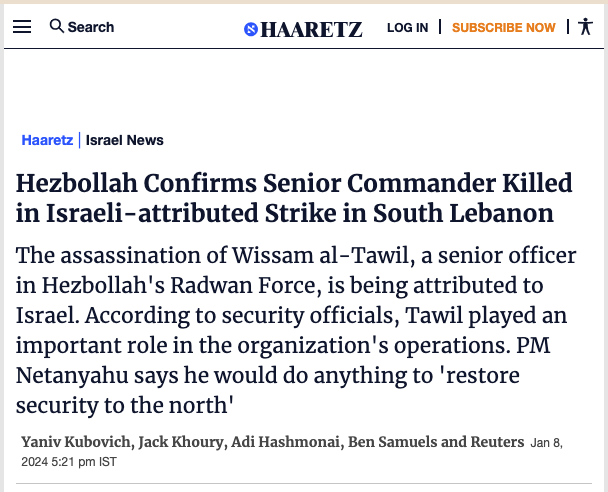 ___ https://www.haaretz.com/israel-news/2024-01-08/ty-article/.premium/hezbollah-confirms-senior-commander-killed-in-israeli-attributed-strike-in-south-lebanon/0000018c-e972-d249-a1ce-ef77f0cf0000