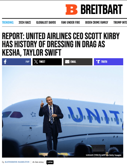 SOURCE: https://www.breitbart.com/politics/2024/01/16/united-airlines-ceo-scott-kirby-history-dressing-drag-kesha-taylor-swift/