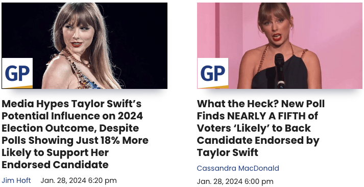Media Hypes Taylor Swift’s Potential Influence on 2024 Election Outcome, Despite Polls Showing Just 18% More Likely to Support Her Endorsed Candidate