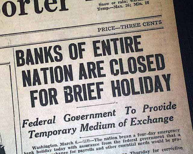 The Federal Reserve is owned by the Too Big To Trust Wall Street Behemoth Banks and does the bidding of the Deep State. The Fed is indemnified by the government (aka you and me) for any losses they incur, as they are currently sitting on $1 trillion of unrealized losses. They were a shadowy privileged institution in 1933 and have only become more powerful, shadowy, and corrupt today. They set the precedent of taking bank deposits from average Americans in the 1930s and will do it again without the slightest hesitation.