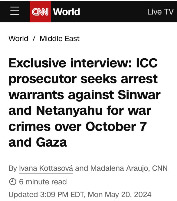 ___ https://www.cnn.com/2024/05/20/middleeast/icc-israel-hamas-arrest-warrant-war-crimes-intl/index.html