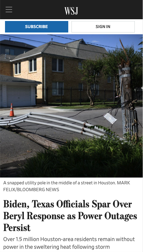 ___ https://www.wsj.com/us-news/biden-texas-officials-spar-over-beryl-response-as-power-outages-persist-a485d6e3