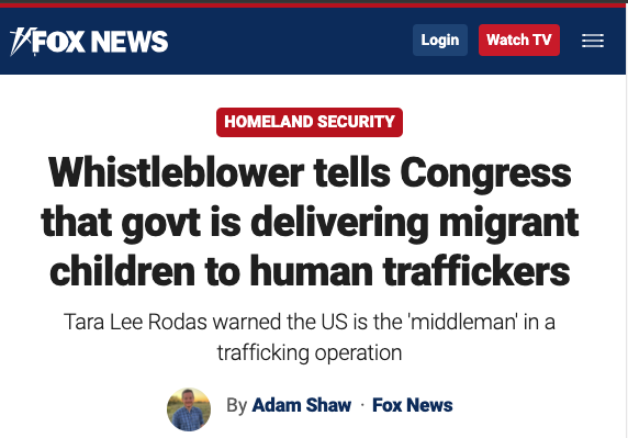 VIEW HERE: https://www.foxnews.com/politics/whistleblower-tells-congress-that-govt-delivering-migrant-children-human-traffickers