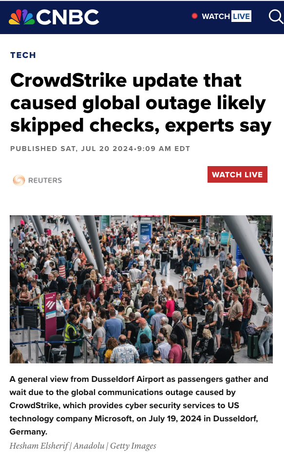 https://www.cnbc.com/2024/07/20/crowdstrike-update-that-caused-global-outage-likely-skipped-checks-experts-say.html