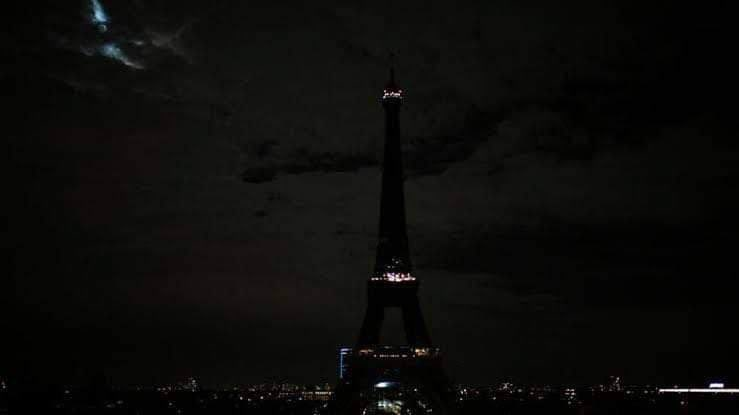 Even the famed Eiffel Tower has only its battery-operated emergency lights: