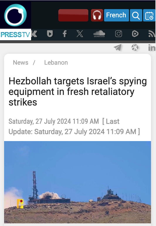 “In support of our steadfast Palestinian people in the Gaza Strip and in support of their valiant and honorable resistance, at 07:58 on Saturday 27-07-2024, the fighters of the Islamic Resistance targeted the espionage equipment at the Misgav Am site with appropriate weapons, hitting it directly,” the statement said.