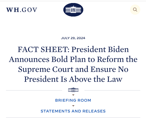 https://www.whitehouse.gov/briefing-room/statements-releases/2024/07/29/fact-sheet-president-biden-announces-bold-plan-to-reform-the-supreme-court-and-ensure-no-president-is-above-the-law/