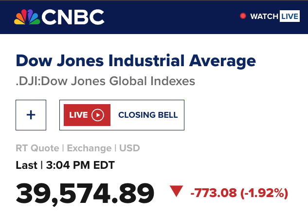 DOWN OVER 750 POINTS! DJIA Drops Like A Rock