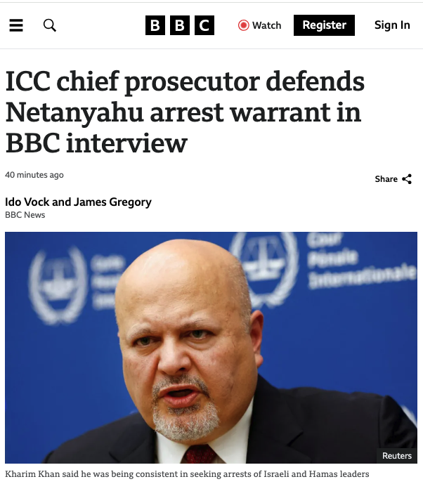 Why is the ICC chief prosecutor defending Netanyahu arrest warrant in BBC interview when the whole world knows that he is a genocidal maniac.