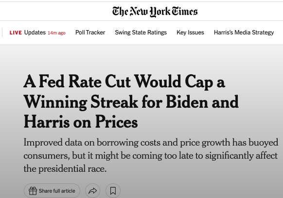 This display of outright election interference by the Chairman of the Federal Reserve is simply too much to bear after so many other institutional and individual acts of interference to rig the POTUS election in Harris’s favor.