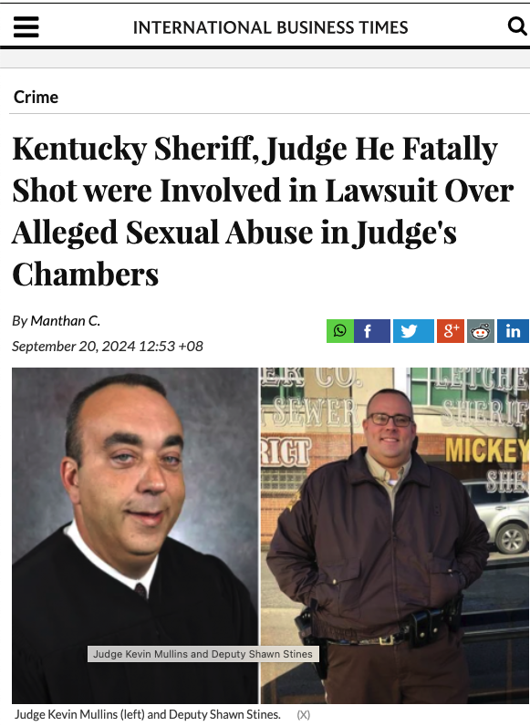 Mullins, who held the judgeship for 15 years, died at the scene, and Stines surrendered without incident. Letcher County’s judge-executive signed an order closing the county courthouse on Friday. The courthouse is in Whitesburg, which is 146 miles (235 kilometers) southeast of Lexington.