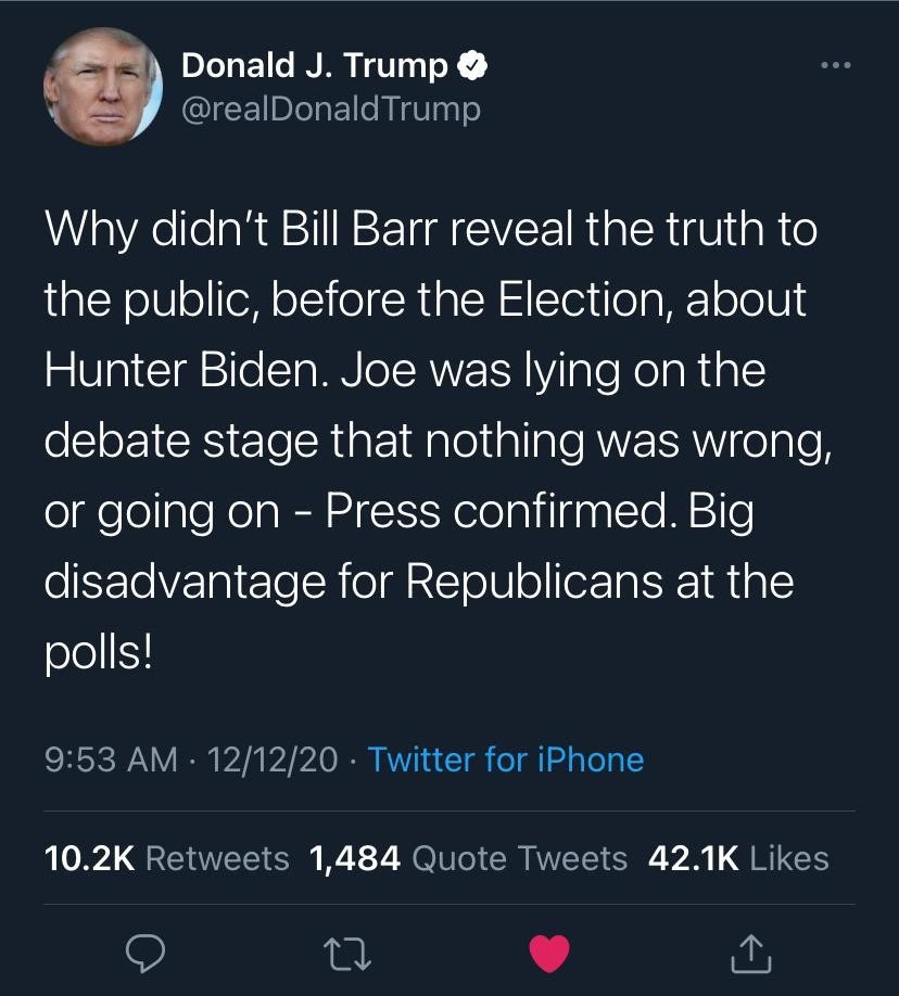 Why didn’t AG Barr reveal Biden criminality truth before the election when he had it?