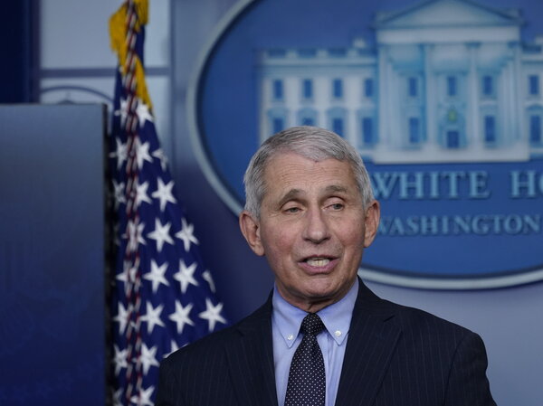 Dr. Anthony Fauci, director of the National Institute of Allergy and Infectious Diseases, speaks with reporters in the James Brady Press Briefing Room at the White House last month. (Alex Brandon/AP)