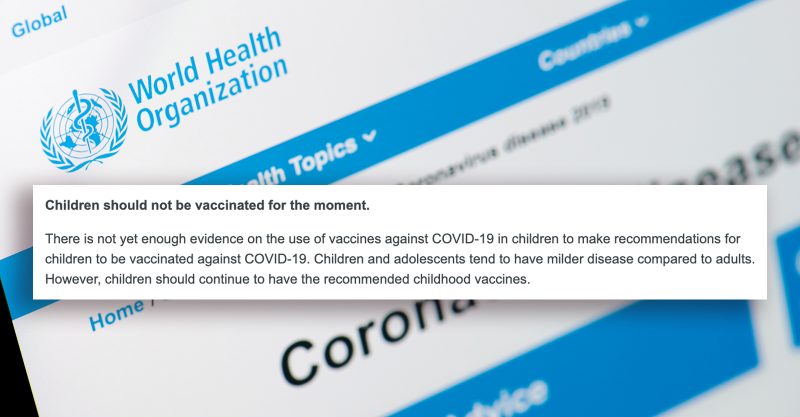 WHO: ‘Children Should Not Be Vaccinated for the Moment’