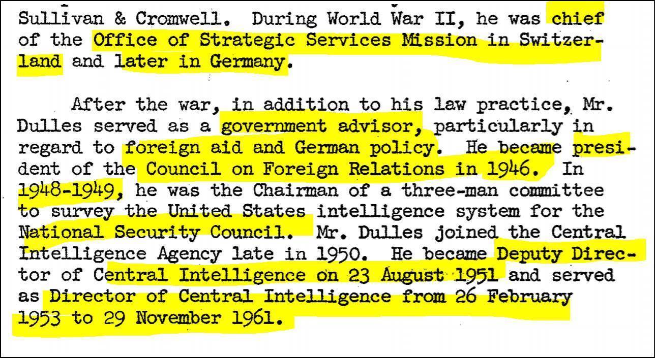 The CIA propagandist in this document catalogued many things about Allen W. Dulles, but somehow missed the elephants in the room. This is scandalous “history” held SECRET since 1962 and only declassified/published in 2013—49 years the lies were concealed.