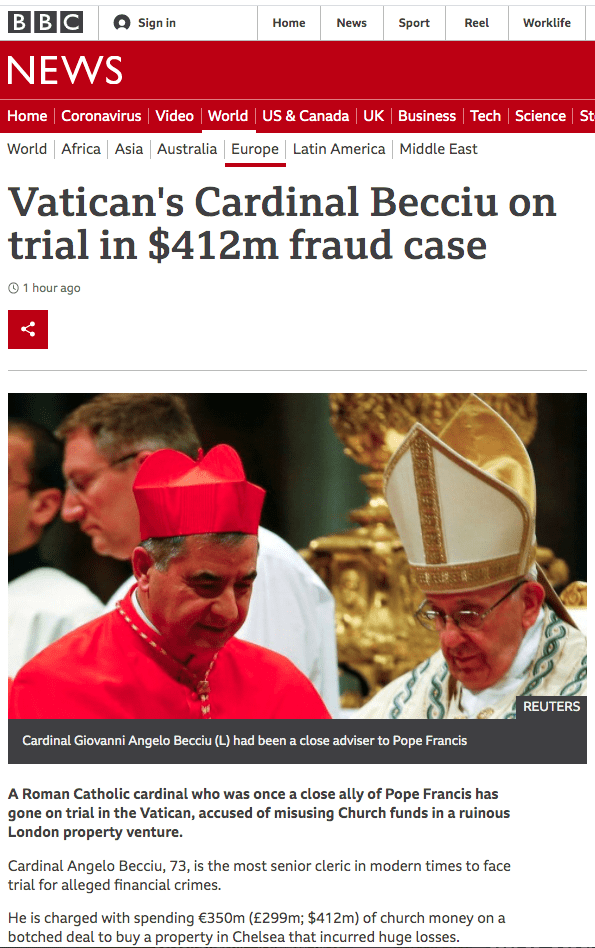 Really, just one Cardinal is being prosecuted for a $412 MIL Vatican fraud case?!
