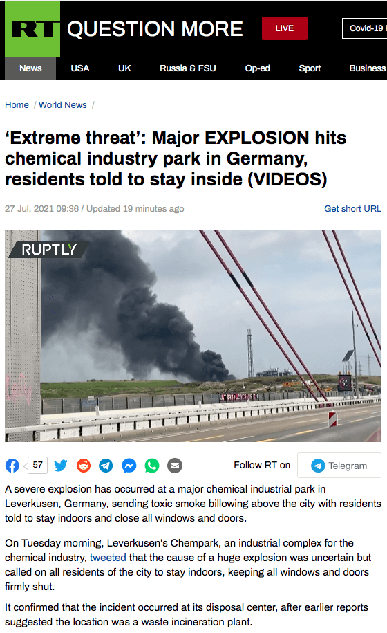 The International “Chemical Plant Sabotage War” Hits Germany with Major Explosion