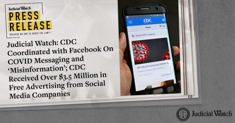 Judicial Watch: CDC Coordinated with Facebook On COVID Messaging and ‘Misinformation’; CDC Received Over $3.5 Million in Free Advertising from Social Media Companies