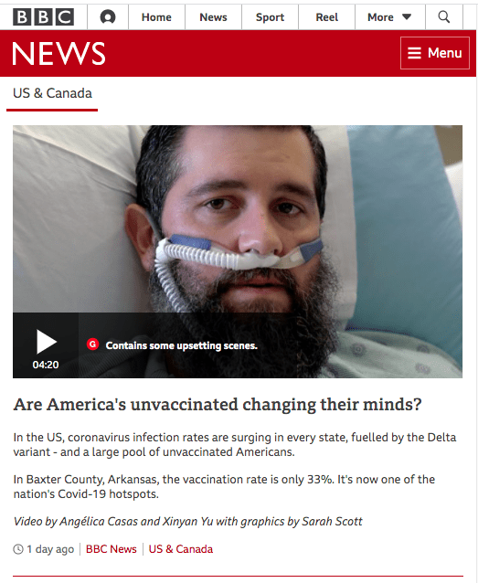 Why is the British “Fake News” media so preoccupied with the unvaccinated in the USA? Are these really crisis actors being used in staged commercials for the dangerous Covid ‘vaccine’?