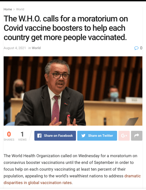 Why, really, did the W.H.O. just call for a MORATORIUM on COVID-19 vaccine boosters?