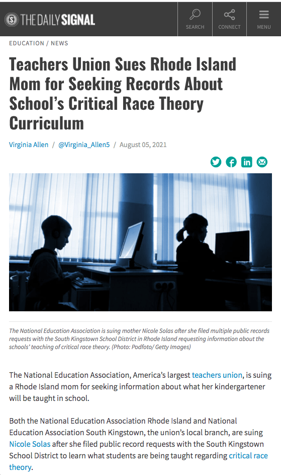 https://www.dailysignal.com/2021/08/05/teachers-union-sues-rhode-island-mom-for-seeking-records-about-schools-critical-race-theory-curriculum/