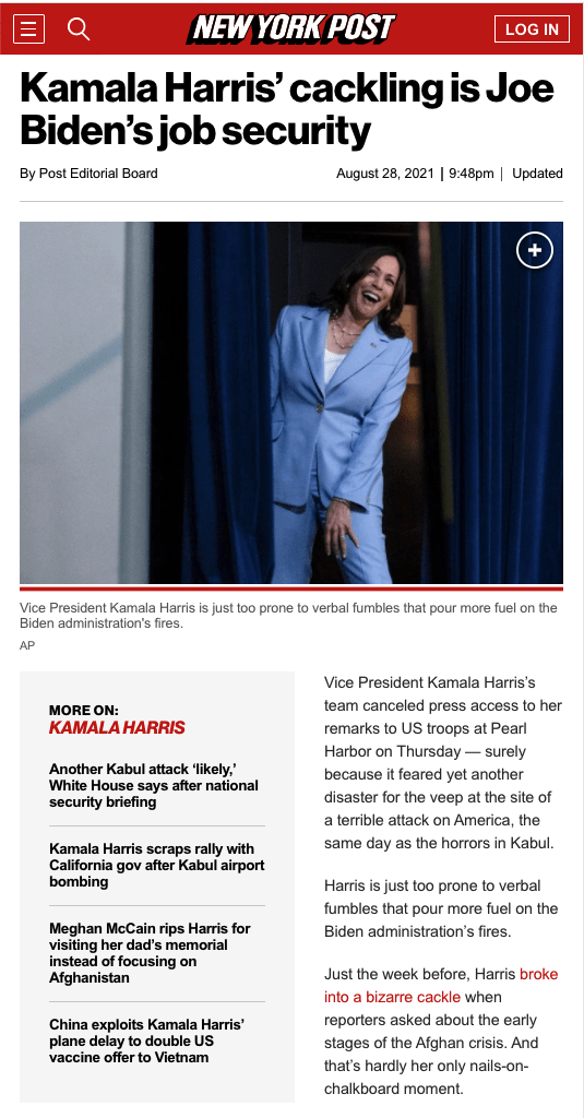 https://nypost.com/2021/08/28/kamala-harris-cackling-is-joe-bidens-job-security/