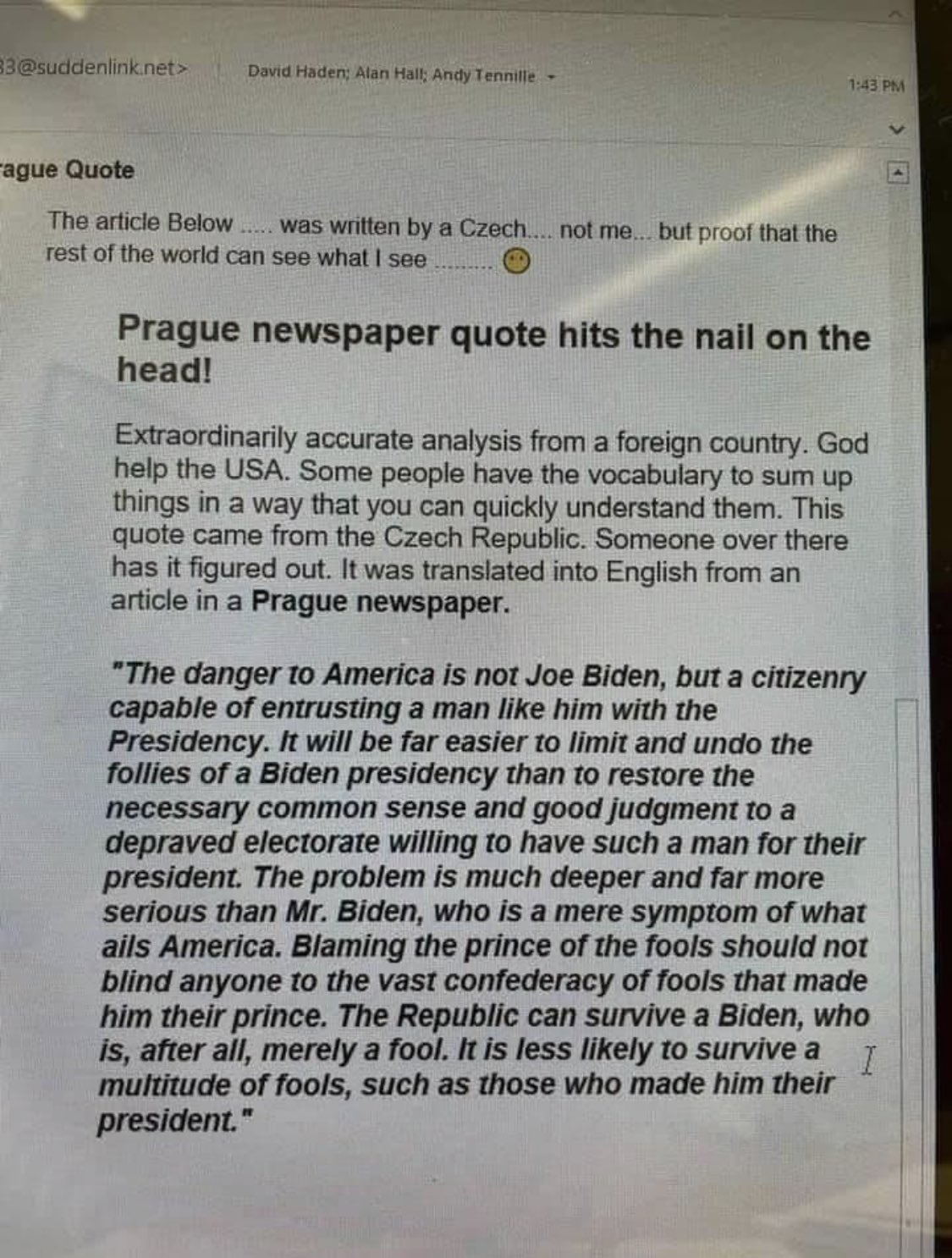 • The U.S. “Nuclear Football” is in the hands of the unknown while we have the Village Idiot sitting in the White House
