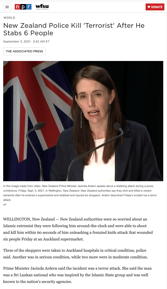 ___ https://www.npr.org/2021/09/03/1033897446/new-zealand-police-kill-terrorist-after-he-stabs-6-people