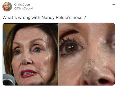 By December 2019, the problem with Pelosi’s nose appears to have moved to the outer right side of her nose with a number of images showing her wearing a band aid.