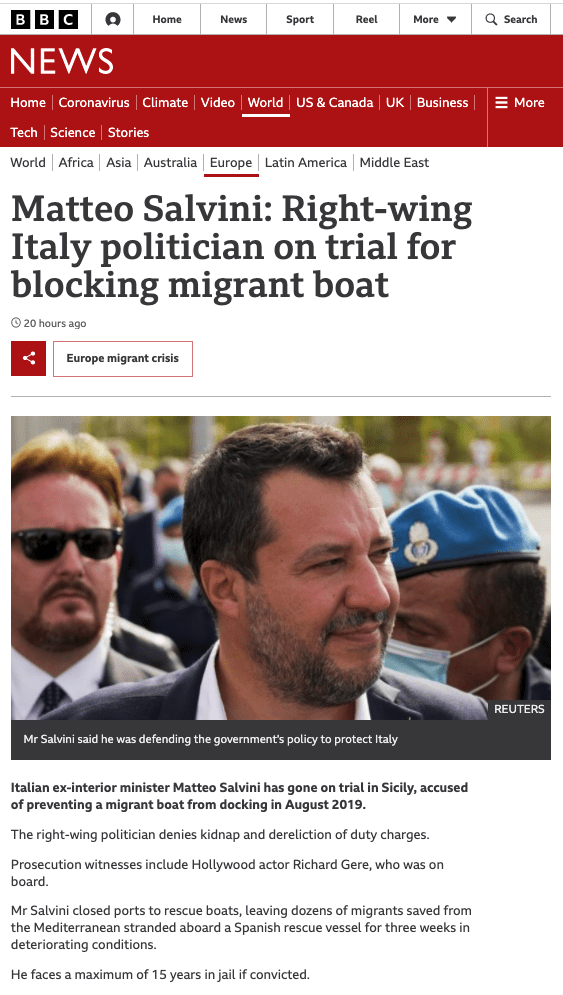 Italy actually put their ex-interior minister on trial for protecting the borders