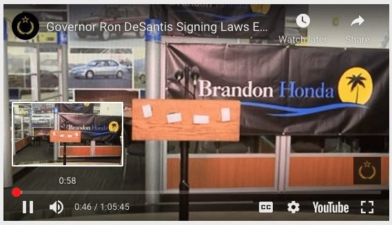 You gotta love this law-signing ceremony that Gov. DeSantis just held at “Brandon Honda”